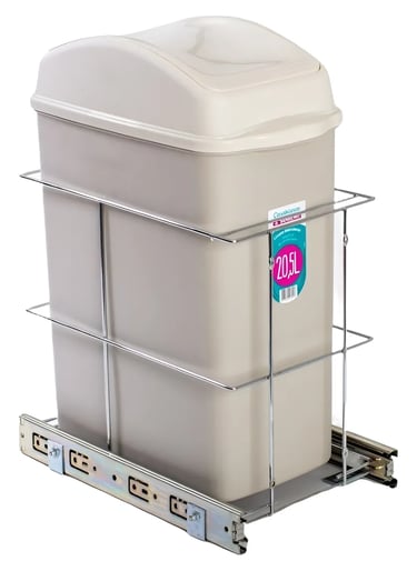 A lixeira embutida é uma solução inteligente para cozinhas pequenas, pois fica escondida dentro do armário.